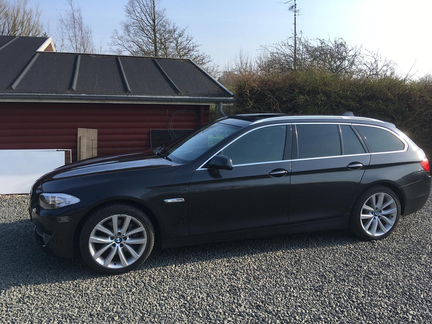 BMW F11 LCI 5 serie touring, der kører fantastisk. Bemærk der er tale om den faceliftede udgave / LCI som kom fra modelår 2014 med et langt mere skarpt visuelt udtryk og bl.a. blink i sidespejle og andre kofangere. Bilen er dansk oprindelig og fremstår meget velholdt. Den lyse kabine spiller perfekt mod den mørke lak, og kabinen er meget nem at holde modsat hvad mange tror. Bilen har en kraftfuld og potent motor, der bl.a. overholder EURO6 normen med addblue, så der ikke er begrænsninger ift. kørsel nogen steder. Samtidig billig i vægtafgift og forsikring bilen taget i betragtning. Bilen har BMW PP Kit monteret, som forøger motorens ydelse fra 258hk til 286hk og hele 600NM. (større intercooler / motorstyring / forbremser ). Originalt og godkendt. Bilen har xdrive, som er permanent 4x4 og det giver en sikker og stabil kørsel under alle forhold. Bilen har omfattede standardudstyr og en del ekstra udstyr: - Bi-xenon forlygter med lygtevask. - Sportslæderkabine med lårstøtte og el-funktioner i Lys beige Dakotalæder. - Stor Professionel Navigation med 10,2" farveskærm og Idrive touch control. 20gb HDD/DVD og mulighed for USB / jack mm. - Bluetooth håndfri med streaming af musik via telefon / rat mm. - DAB Radio modtager - 2 zone klimaanlæg med bl.a. sædevarme foran. - Fartpilot - Multifunktionslæderrat - Drive performance mode - med ECO Pro funktion - Auto Hold - Auto start/stop - Elektrisk bagklap med styring fra fjernbetjening - 8-trins automatgear ( Gearkasseolie skiftet ) - Mat chrom tagræling - Regnsensor med forlygteaktivering for dagslys - Fuldautomatisk anhængertræk - elektrisk styring fra bagagerum - Parkeringssensor for og bag - optisk og visuel visning - Bagagerums bakke og bagagerum adskillelse - Vintergummi måtter og sommer stof måtter - 19" originale sommerfælge - Tonede ruder Bilen fremstår 100% original og sælges kun grundet et mindre kørselsbehov end antaget da vi købte den. Denne annonce er oprindeligt oprettet på bilgalleri.dk